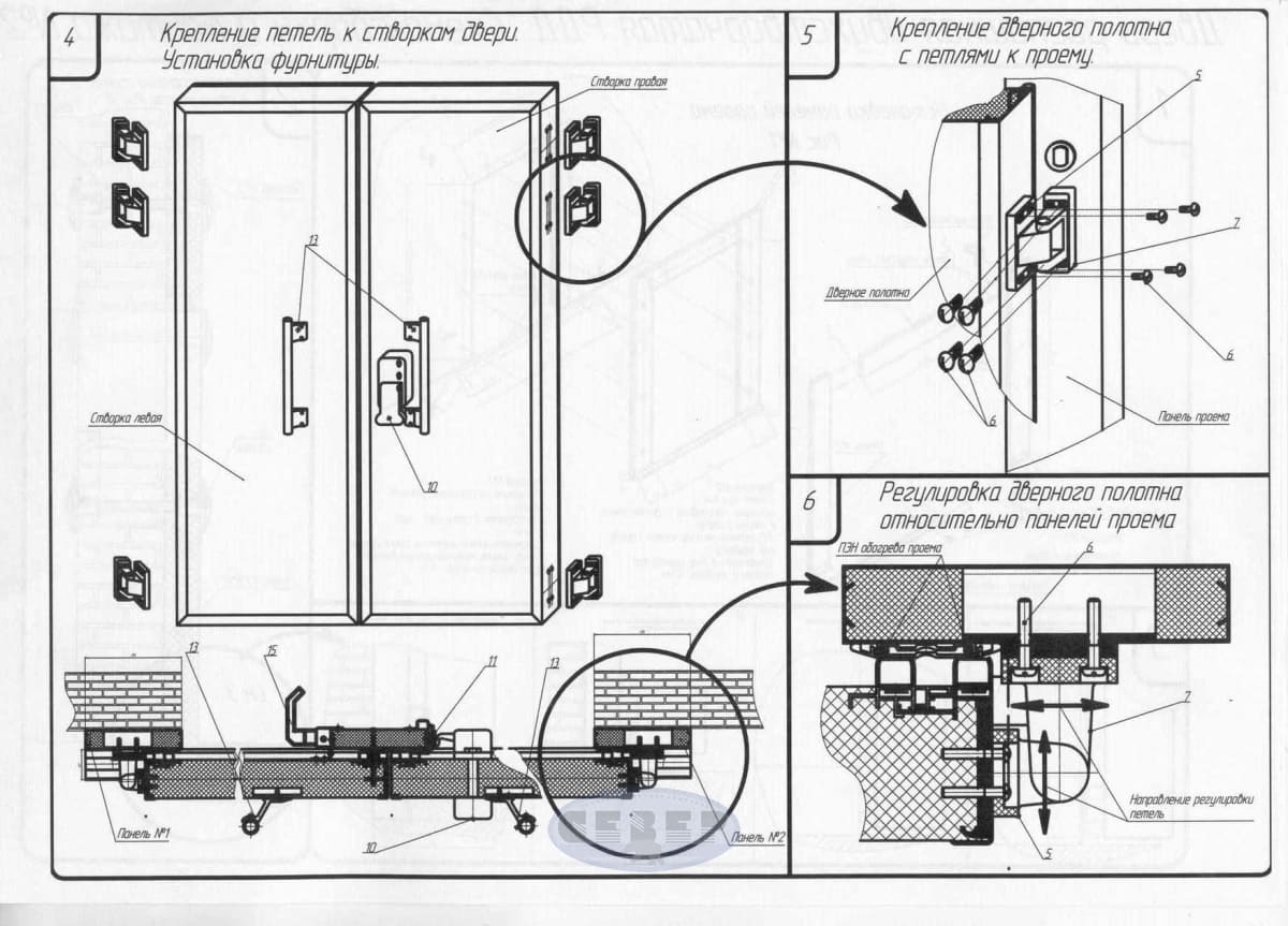 В комплект двери входит комплект крепления дверной рамы к сэндвич-панели или к бетонной стене (уточняется заказчиком).